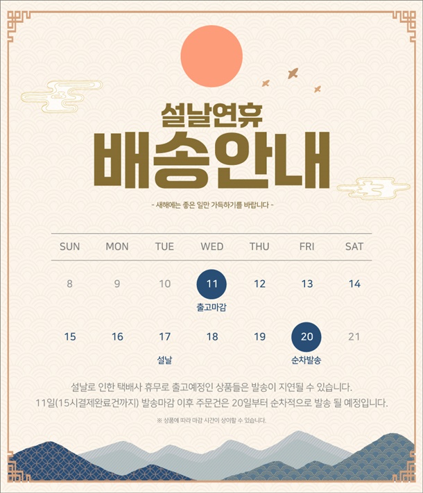 · 예약 발송 상품은 상 품 상세 설명에 안내한 배송관련 정보를 반드시 확인 후 구매해 주세요.